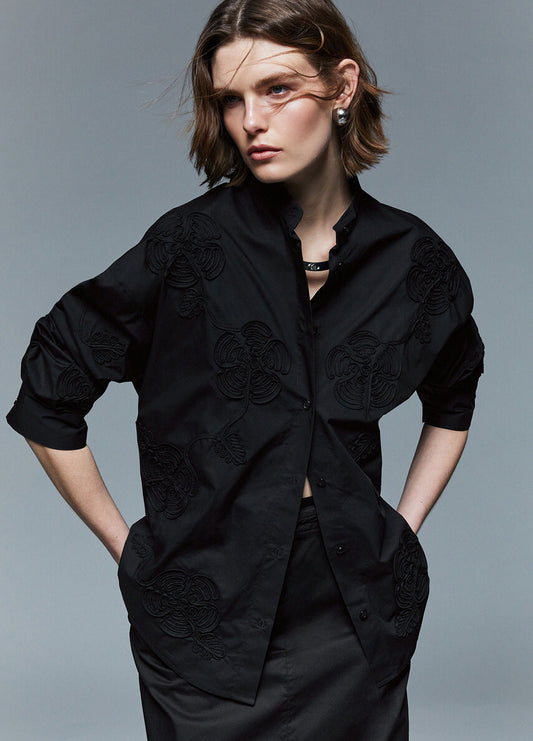 SHIRT FLEUR NOIR MANCHE UXUE By TINTA