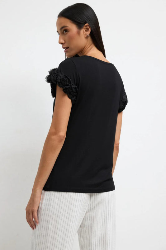 SHIRT S MANCHE FLEUR NOIR YUNCIOS By TINTA