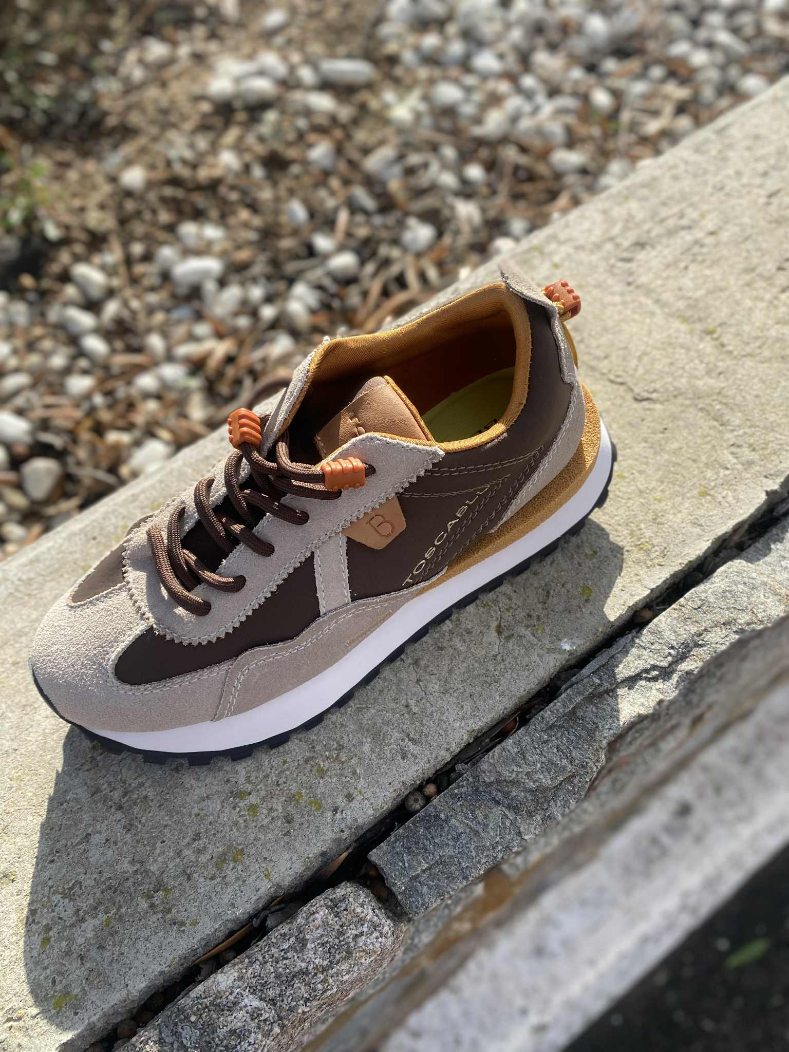 Découvrez les toutes nouvelles baskets en cuir de Tosca Blu, un must-have pour vos looks casual-chic. La tige mauve présente un contrepoint sophistiqué de textures et de couleurs. Des empiècements en daim souple sont juxtapositionnés contre des empiècements en cuir uni et en tissu. Cela permet non seulement d’obtenir une esthétique raffinée dynamique, mais aussi un confort exceptionnel. La semelle repose sur une bande de roulement à crampons qui assure un amorti optimal pendant la marche. Ces baskets en cuir sont ornées d’un mince détail coloré entre la tige et la semelle, ce qui leur confère une touche d’élégance et de brio