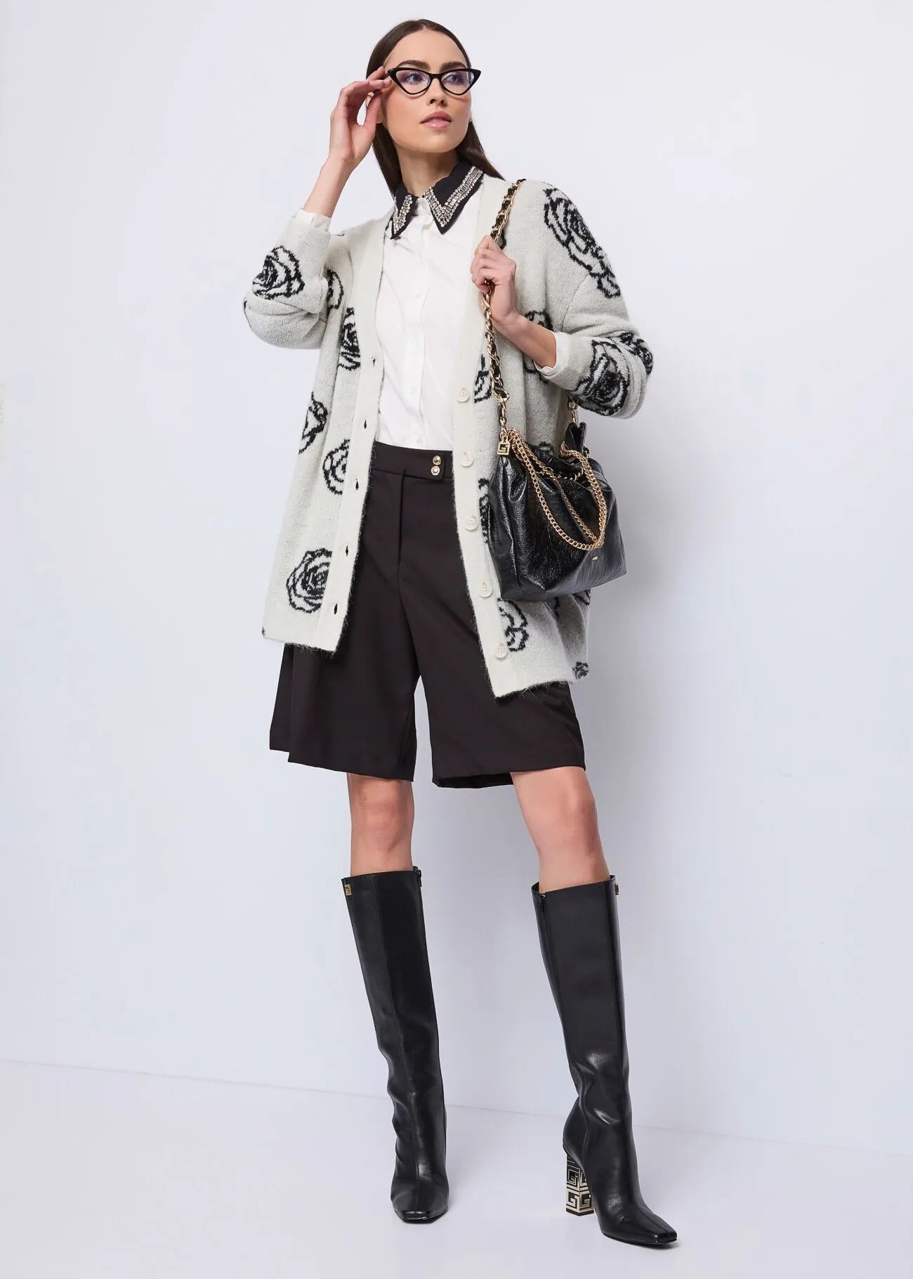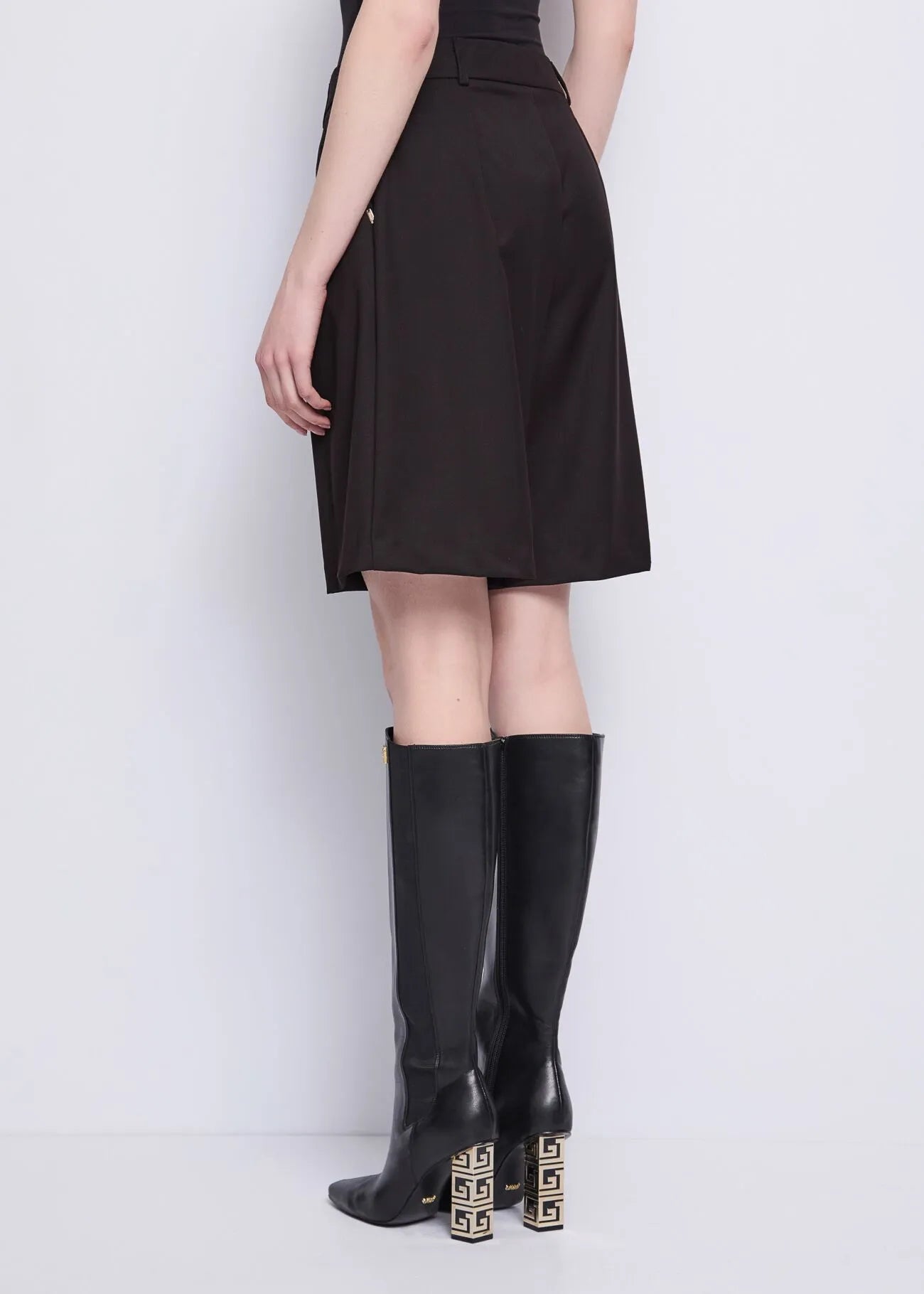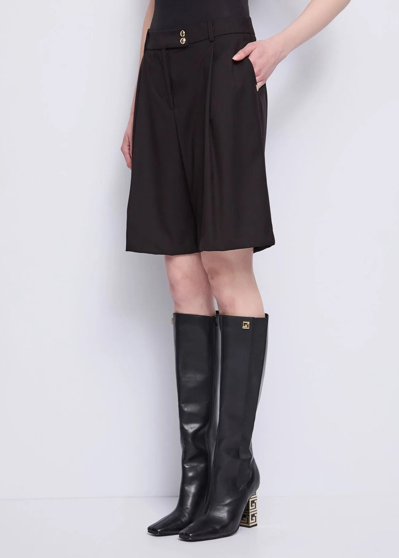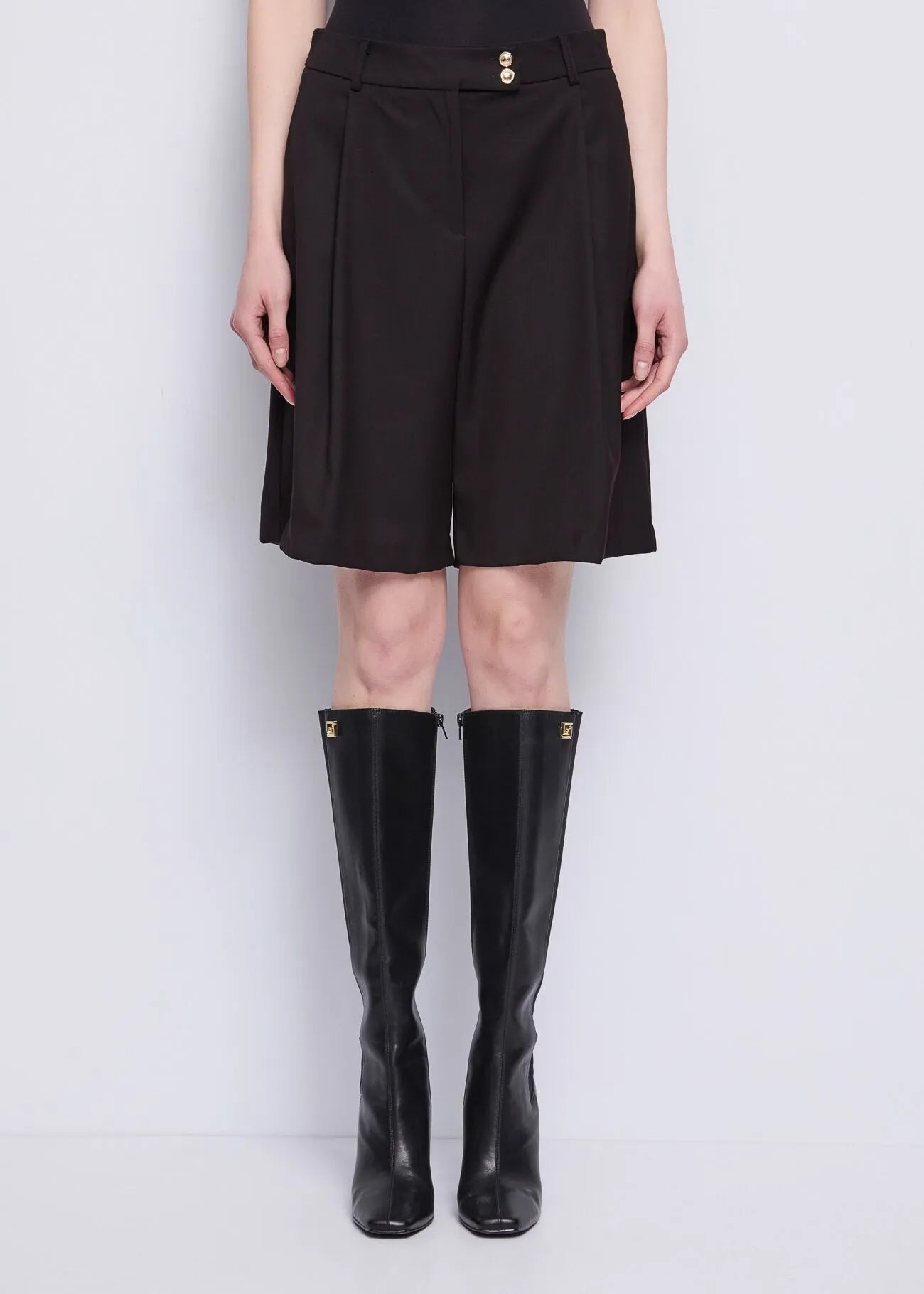 Optez pour ce bermuda en viscose mélangée extensible, doté de plis, de poches latérales et de boutons bijoux. L'alliance parfaite de l'élégance et du confort.