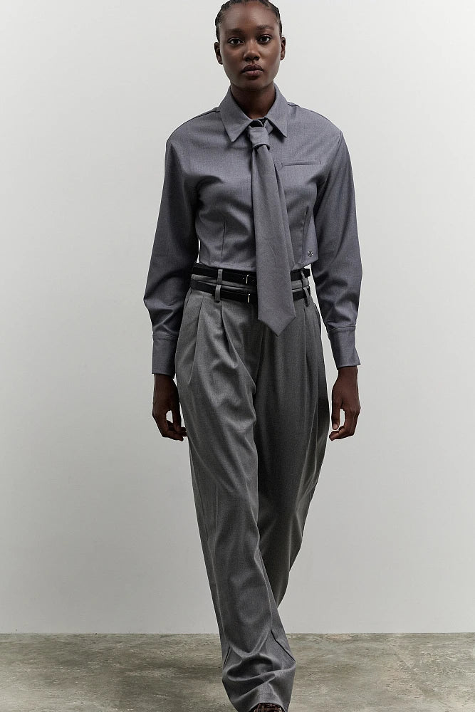 Chemise, à manches longues, avec col, fermeture à boutons, avec lien amovible, coupe courte