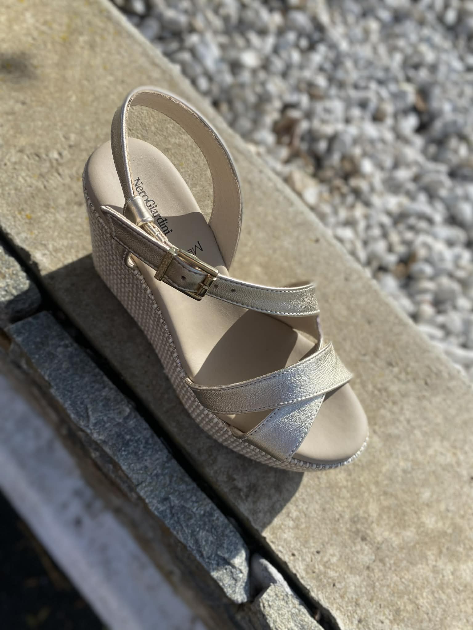 Sandales NeroGiardini fabriquées en Italie avec des matériaux de qualité et testées en laboratoire. La recherche stylistique continue garantit des chaussures aux tendances toujours originales et extrêmement confortables à porter. Design raffiné pour un look chic et tendance. La production Made in Italy des chaussures NeroGiardini est soulignée par le tricolore imprimé sur les semelles et sur l'emballage