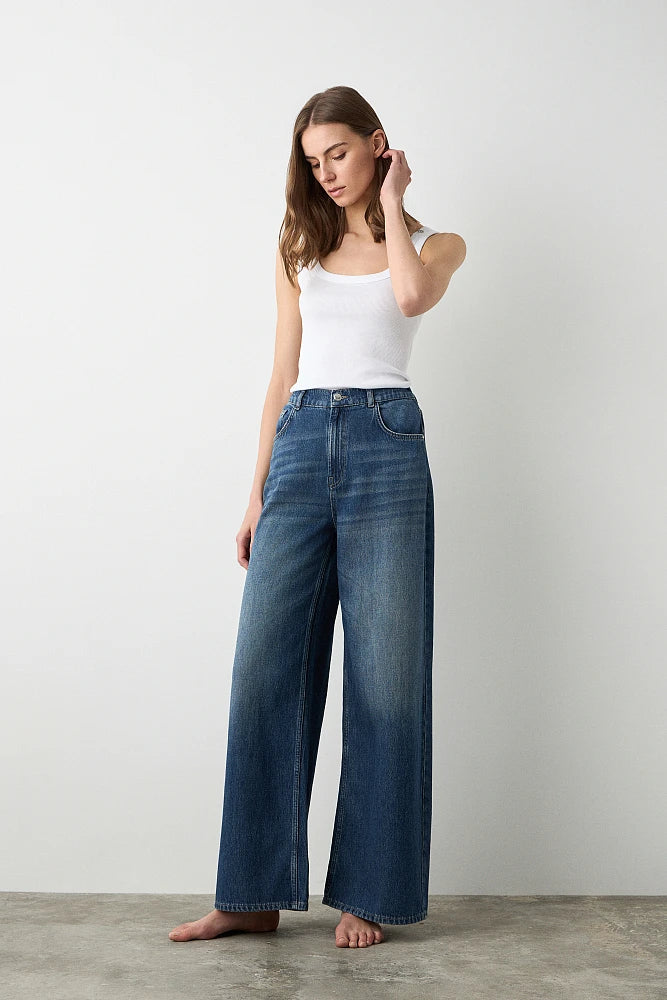 Jean Lexa, fermeture boutonnée et zippée, avec poches, taille mi-haute, jambe large