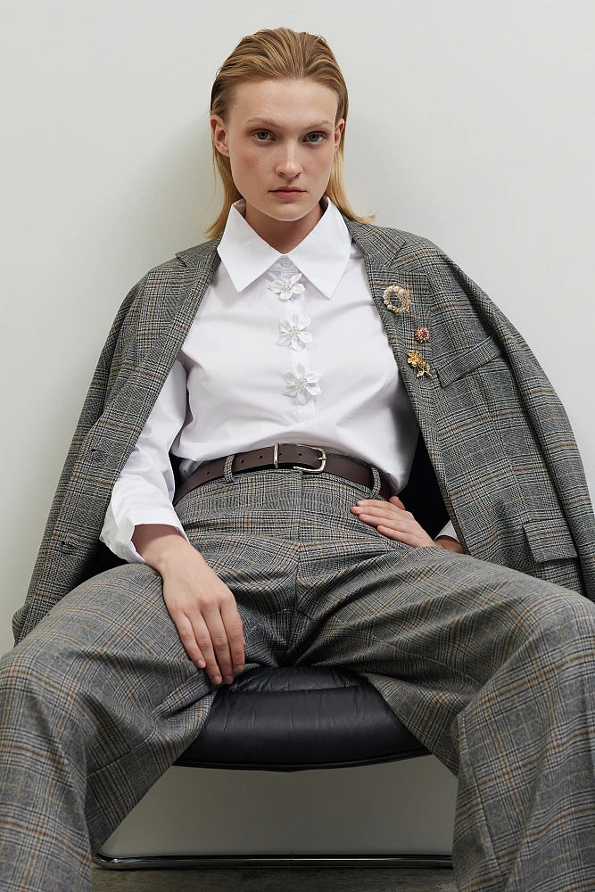 Pantalon à carreaux, avec poches, avec fermeture zippée et fermoir, avec ceinture, coupe classique