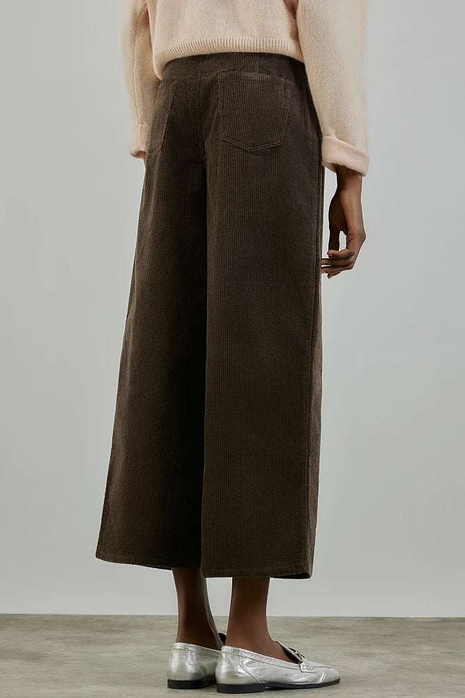 Pantalon Kea, fermeture boutonnée et fermeture zippée, avec poches, velours côtelé, court, jambe large, taille haute