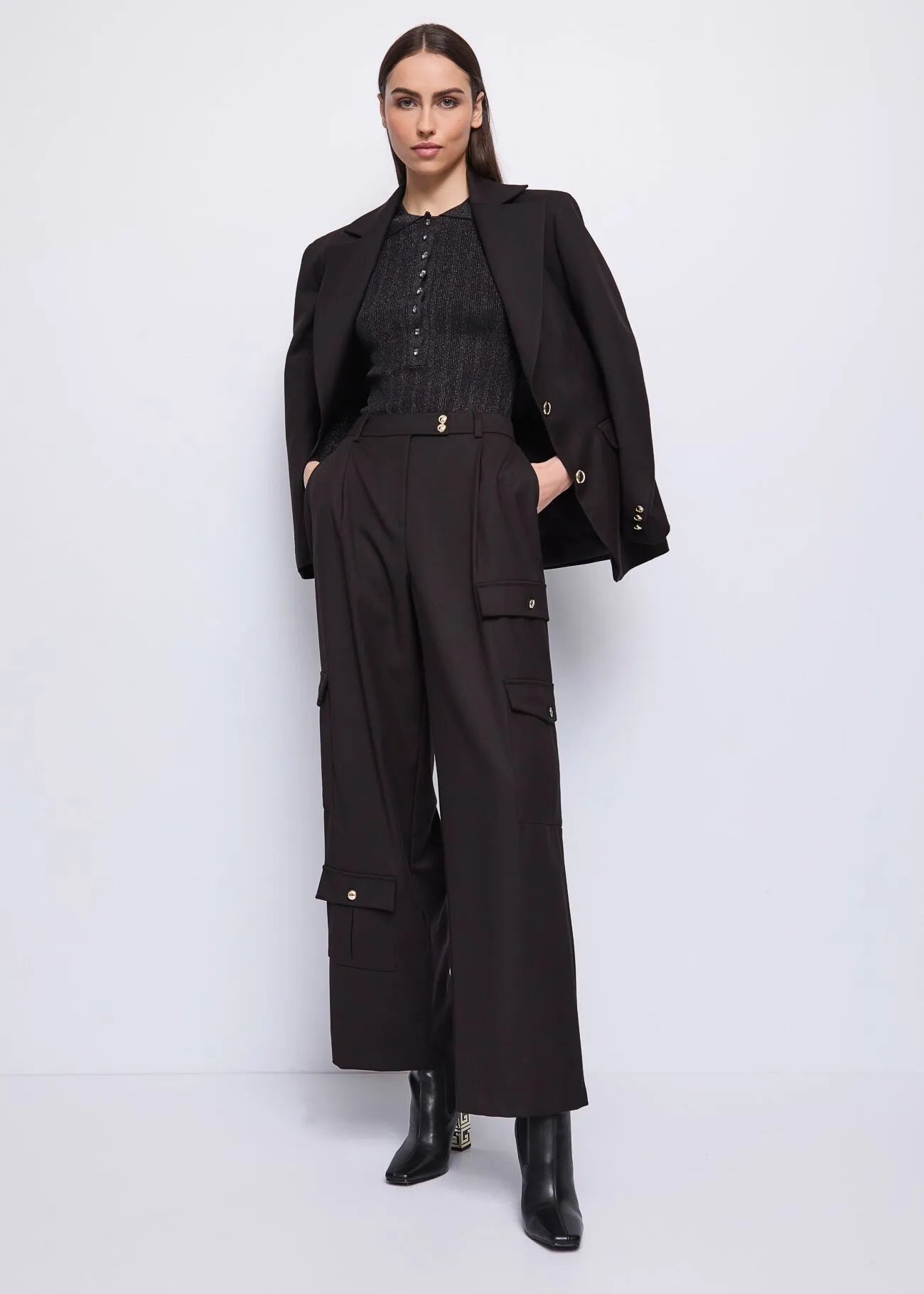 Pour une élégance urbaine sophistiquée et contemporaine, ce modèle s'associe parfaitement à un blazer et un pantalon cargo assorti. Complétez le look d'une touche glamour en ajoutant des bottes à talons ornées du logo qui affinent la silhouette.