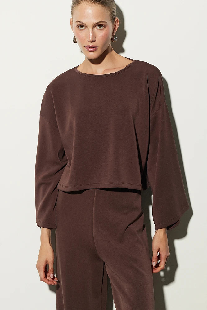 Chemisier, à manches longues, manches larges, encolure ronde, coupe régulière, toucher doux
